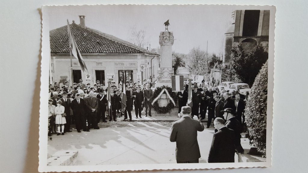 Nel centenario di quella battaglia e della fine della Grande Guerra, la figlia Margherita Pretto lo ricorda con affetto e con stima. Margherita oggi ha 88 anni e vive nella sua casa di Vo’ di Brendola, che per tanto tempo ha condiviso con il marito Aurelio Dal Prà, storico veterinario del paese. Margherita racconta il suo affetto e la sua stima per il padre Eugenio attraverso alcune foto di mezzo secolo fa, che conserva in una busta dell’epoca e che mi mostra un sabato pomeriggio di settembre. “Le ho trovate qui a casa” dice “e mi è venuto in mente che, forse, potrebbero interessarti per il giornale”. Sono foto del 4 novembre 1967, scattate a Brendola durante la cerimonia commemorativa sul monumento ai caduti, di fronte al Municipio. I luoghi erano un po’ diversi rispetto ad oggi, ma si riconoscono. Così come si possono riconoscere le persone, almeno alcune. Tra queste c’è Eugenio, che fa il suo discorso da presidente e da ragazzo del ‘99. E da quelle foto Margherita ripesca ricordi e sensazioni, mentre meticolosamente prepara un caffè: moca, vassoio, tazzine, cucchiaini, zucchero e… “Corretto cognac?” Non lo bevo mai corretto, ma stavolta bisogna andare fino in fondo: come si fa a ostacolare un tal rituale?