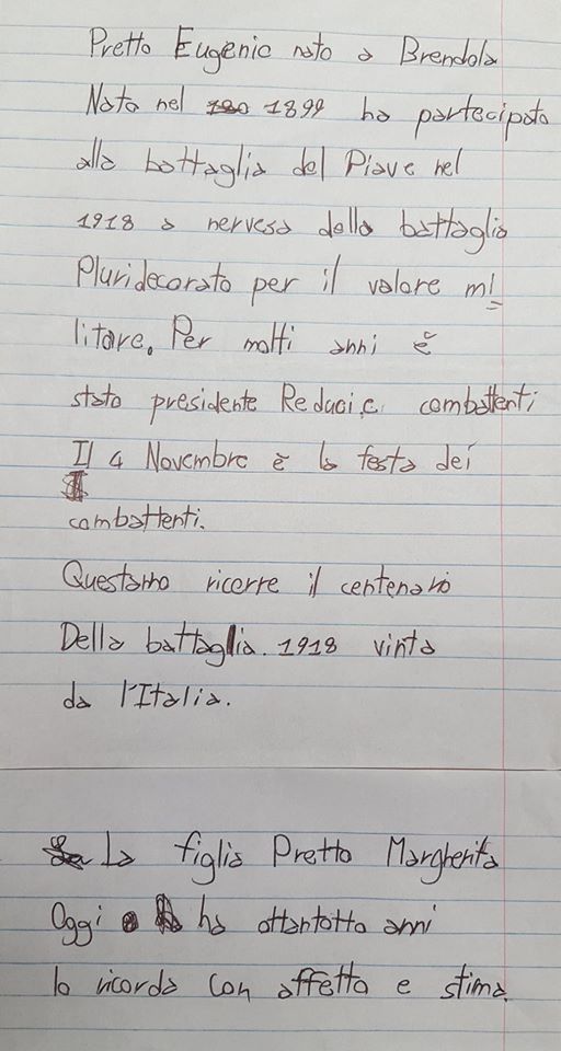 Pretto Eugenio, nato a Brendola nel 1899, fu un ragazzo del ‘99. Partecipò alla battaglia del Piave nel 1918, a Nervesa della Battaglia.