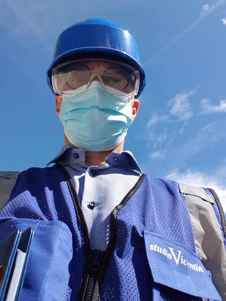 Io in agenda ho un sopralluogo in cantiere, e mica un cantiere qualunque. Qui bisogna entrare in alta uniforme, mettendo insieme giubbino d’ordinanza ben riconoscibile (catarifrangente sì, traspirante così così), scarpe antinfortunistiche, mascherina boccanaso anticontagio, casco paracolpi e occhialoni paraschizzi. Questi ultimi, per noi ipovedenti non lentiacontatto-dotati, vanno sopra gli occhiali da vista: i due dispositivi bisticciano un po’, ma in qualche modo se ne fanno una ragione.