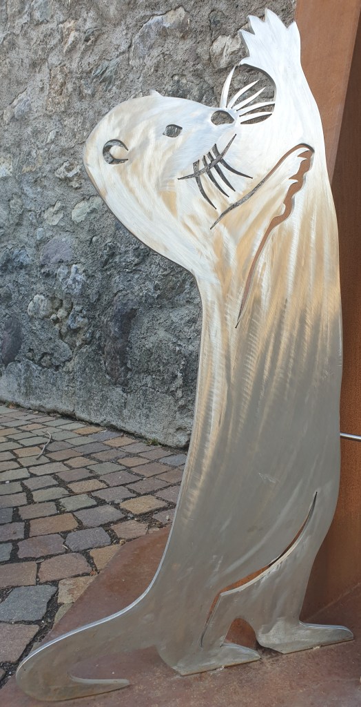 Si dice (e chissà se c’è del vero) che l’ultimo avvistamento risalga a meno di un secolo fa, durante i lavori di costruzione di un’altra diga, artificiale stavolta, in mezzo all’orrido canalone. Fu un operaio del cantiere a scorgerla, pare, proprio sulle sponde del bacino in formazione, e questi ne diede festosa e orgogliosa notizia a tutti i compagni, “Ho visto una lontra!” annunciava, non prima di averla raggiunta con una fucilata. Si sa mai che svicolasse fuori vista o che facesse danni. Era l’ultima e da allora non se ne videro più da queste parti, se non disegnate, scolpite e narrate.